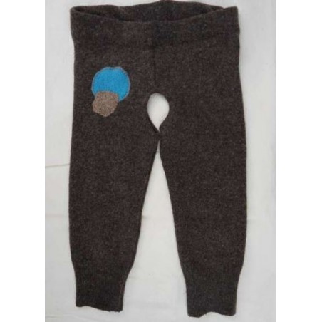 Tout doux et tout chaud, pantalon chinois en laine avec ouverture à l'entre-jambe pour la pratique de l'Hygiène Naturelle Infantile, confectionné avec soin à partir d'un vêtement recyclé. Fabriqué en France, dans l'Aude.