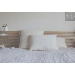 Enveloppée d’un tissu 100% coton bio, cette laine a été lavée, floconnée, puis transformée en oreillers dans le centre de la France.