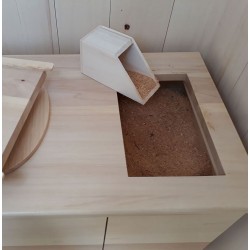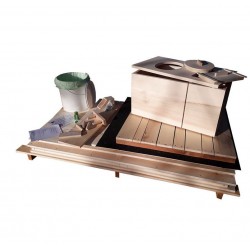 Le meuble constituant ce kit toilettes sèches est fabriqué en peuplier, raboté double face, assemblé et collé avec une colle blanche résistante à l’humidité.
