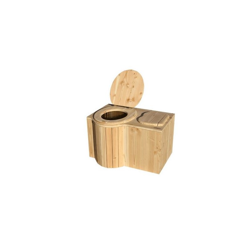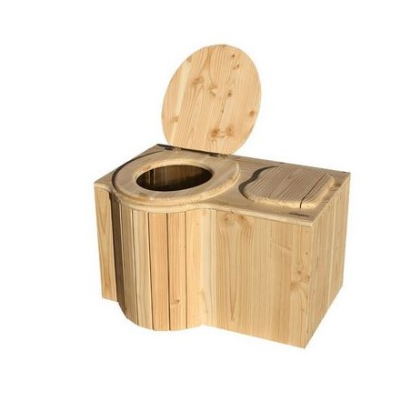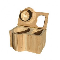 Une toilette pour toute la famille avec sa grande réserve à copeaux facilement accessible aux enfants. Habillage en Douglas.