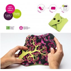 Pratique : Elle s'utilise pour les flux peu à moyennement abondants, pour le début ou la fin des règles, ou pour les petites fuites urinaires. Elle s'utilise également en complément de la coupe menstruelle !