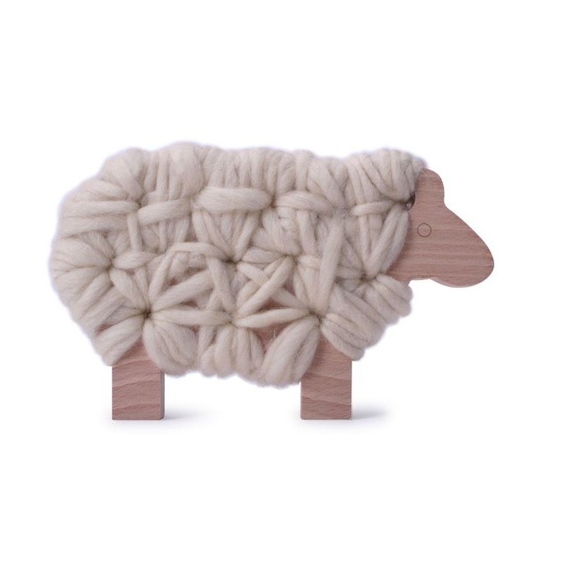 Woody est un mouton frileux qui souhaite s’emmitoufler dans un doux manteau en laine. L’enfant passe et repasse la laine dans les trous du mouton à l’aide de l’aiguille. Un jeu de loisir créatif affectif qui exerce la patience et la motricité fine de l’enfant. Une fois l’ouvrage terminé, il devient un bel objet décoratif, unique, composé de bois du Jura et de laine naturelle issue de mouton français. La laine est produite par une des dernières filature de France. Une alternative au tricot avec un résultat surprenant !