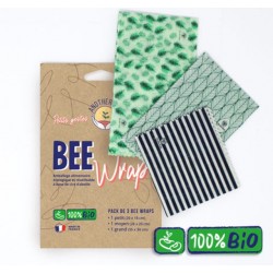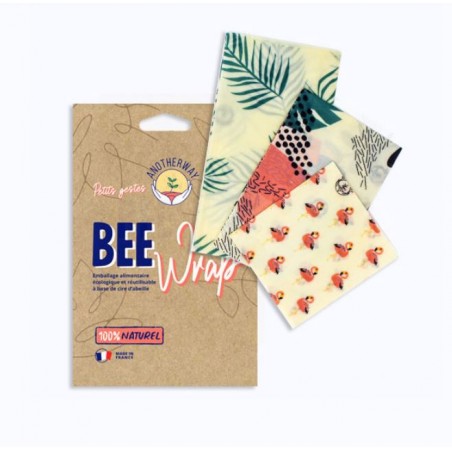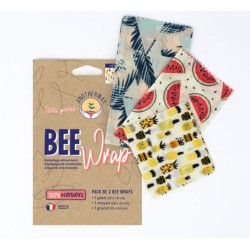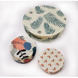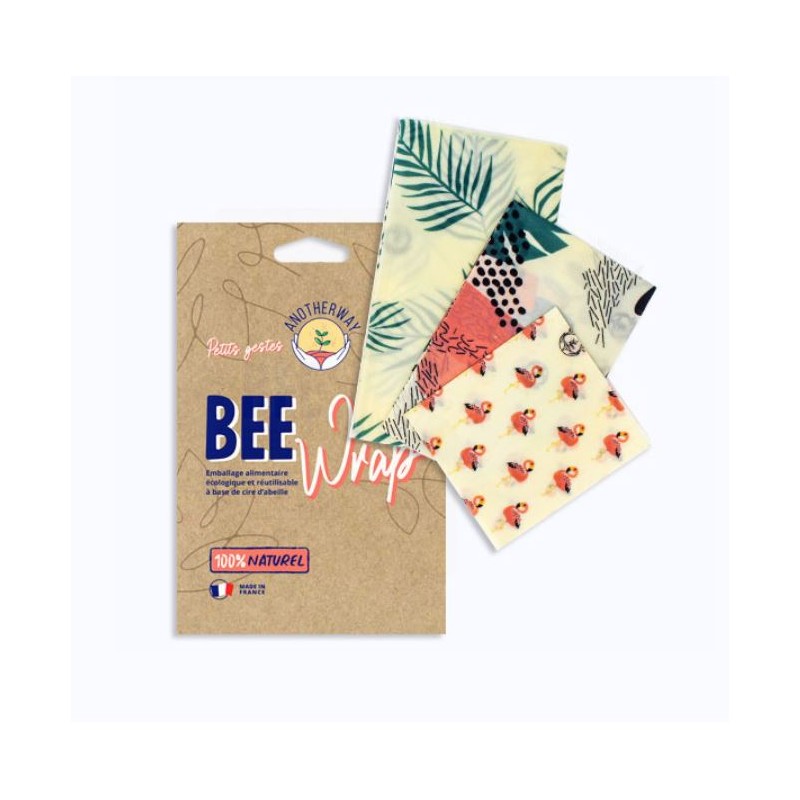Ce pack contient 3, 6 ou 9 films alimentaires à base de cire d’abeille, qui s’appelle aussi « Bee Wrap », avec un motif tropical pour mettre de la couleur dans vos frigos.