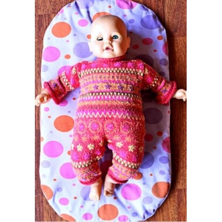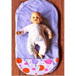 Taille Unique (de la naissance à 2 ans) soit environ 40 cm de haut sur 70 cm de long et 3 cm d'épaisseur. Un seul coloris violet et poids orange mixte